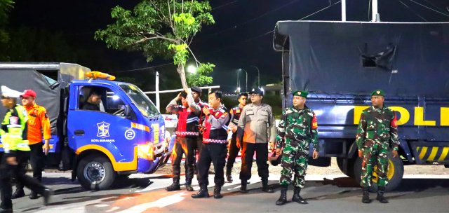 Personel gabungan dari TNI-Polri dan instansi Pemkot Surabaya, turut dikerahkan demi efektivitas pengawasan malam hari.
