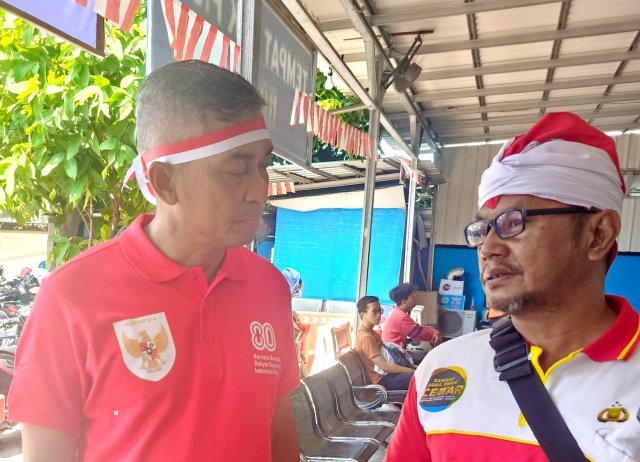 Setiap warga yang datang mengurus surat-surat kendaraan pun mendapatkan hadiah bendera Merah Putih sebagai simbol kebersamaan dalam merayakan kemerdekaan.