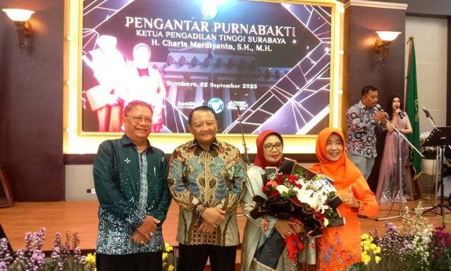 SURABAYA – Ketua Pengadilan Tinggi (PT) Surabaya, Charis Mardiyanto, resmi memasuki masa purnabakti setelah mengabdi selama 41 tahun di dunia peradilan.