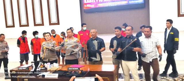 “Mereka kemudian mencari kabel jaringan (PJU) dan kabel Telkom untuk dipotong menggunakan gergaji besi dan tang pemotong. Kabel yang sudah dipotong ditarik menggunakan katrol agar lebih mudah diangkat keluar.” cetus Kapolrestabes saat Konferensi pers di Gedung Bhara Daksa.