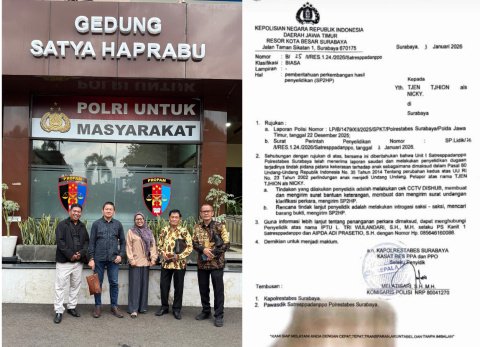 Berdasarkan dokumen bernomor B/25/RES.1.24./2026/Satresppadanppo, Unit Satres PPA dan PPO Polrestabes Surabaya menyatakan telah menerima laporan polisi Nomor: LP/B/1479/XII/2025/SPKT/Polrestabes Surabaya/Polda Jawa Timur tanggal 22 Desember 2025. Laporan tersebut diajukan oleh TJEN TJHION alias NICKY, warga Surabaya.
