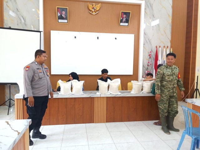 Penyaluran bantuan dipusatkan di pendopo kantor desa setempat, Jumat (10-04-2026). Para keluarga penerima manfaat (KPM) tampak tertib mengantre untuk mendapatkan beras premium seberat 20 kilogram dan empat bungkus minyak goreng, masing-masing berisi 2 liter.