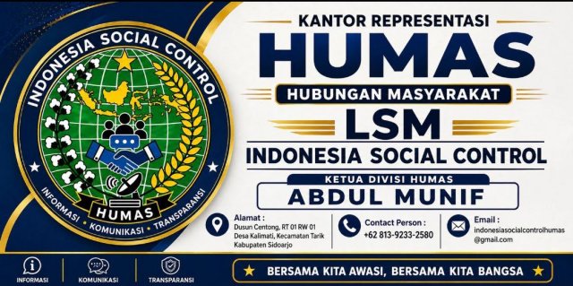 SIDOARJO – Lembaga swadaya masyarakat (LSM) Indonesia Social Control (ISC) resmi memperkuat struktur organisasinya dengan menetapkan kepengurusan baru di Divisi Hubungan Masyarakat (Humas), melalui Surat Keputusan (SK) Ketua Umum yang ditandatangani di Surabaya pada 30 April 2026. Penunjukan ini disebut sebagai langkah strategis untuk memperkuat komunikasi publik dan fungsi kontrol sosial organisasi.
